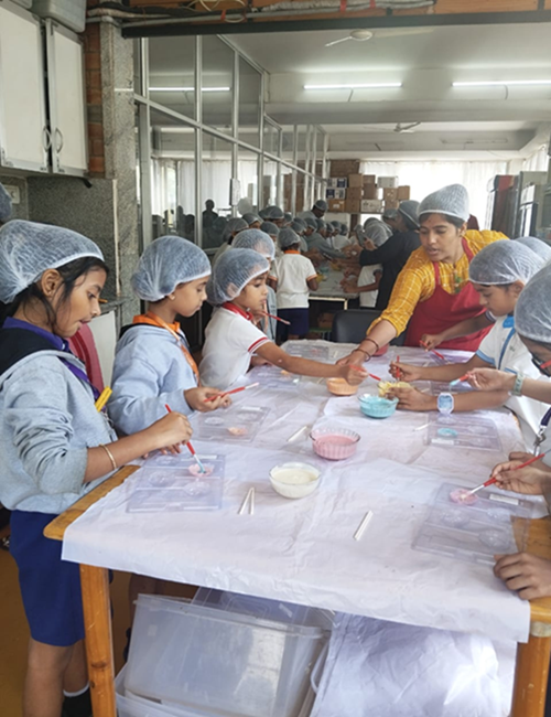 The field trip to Jus’ Turfs Chocolate Factory in Bengaluru was a delightful blend of hands-on learning and fun-filled activities, offering students an insider’s look into the fascinating world of chocolate making. The day began with a warm welcome at the factory, followed by a live demonstration of the chocolate-making process.