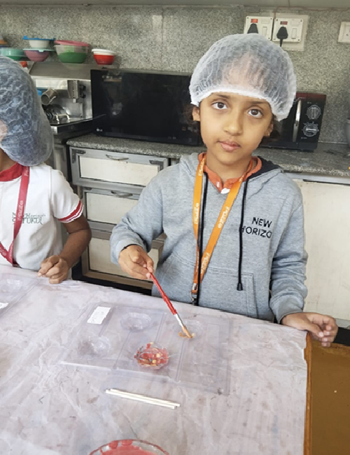 One of the most exciting parts of the visit was the chocolate-making session, where students had the chance to create their own chocolate lollipops. Using clean, food-safe tools and moulds, they mixed and shaped the chocolate, experiencing firsthand what it’s like to be a chocolatier. After the activity, each student was awarded a “Junior Chocolate Chef” certificate, recognizing their participation and effort.